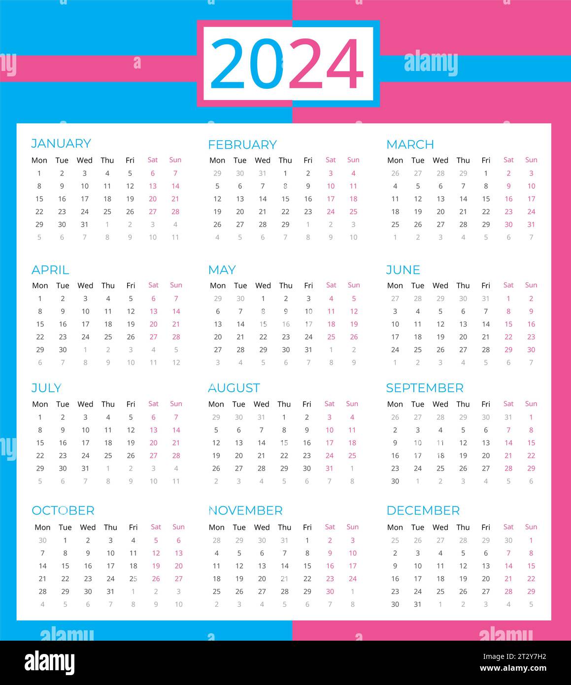 calendar for 2025, Pink blue Calendar 2025 week starting Monday